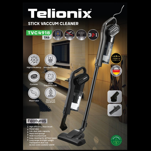 جاروبرقی عصایی 4918 از سری محصولات جدید تلونیکس است که با موتور 600 وات، مکش قوی 18KPA و وزن سبک طراحی شده تا نظافت روزانه را بسیار سادهتر کند.