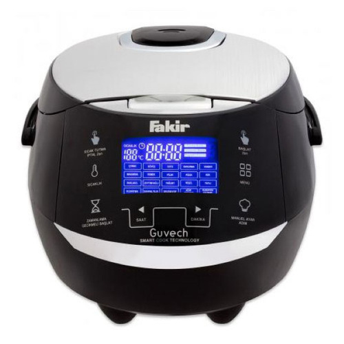 پلوپز فکر Guvech از تولیدات شرکت آلمانی فکر (Fakir ) می باشد.شرکت فکر از شرکت های به نام و معتبر در جهان در زمینه ی ساخت لوازم خانگی و لوازم آشپزخانه است. پلو از پر طرفدارترین غذاهای هر خانواده ی ایرانی است که به طور معمول هر روز درست می شود. علاوه بر پلو در پخت و پز انواع کباب ها گوشت ها و کیک و آش نیز می توان از آن استفاده کرد. پلو پز از جمله لوازم آشپزخانه به شمار می رود که وجودش برای پخت و درست کردن بهتر و آسان تر پلوهای لذیذ در هر خانه ای لازم می باشد. پلو پز فکر Guvech از بدنه ای با جنس پلاستیک و جنس مخزن دیگ آن از دو نوع پوشش لایەای از جنس سرامیک ساخته شده است که مانع از چسبیدن مواد به دیگ پلوپز می شود و علاوه بر آن عمل شستو شوی دیگ را نیز راحتتر می کند. گنجایش مخزن دیگ پلو پز فکر Guvech به میزان 5 لیتر بوده که برای یک خانواده ی متوسط بسیار مناسب است دیگ این پلوپز قابلیت جدا شدن از خود دستگاه را دارد و برای بیرون کشیدن غذا از آن و شستنش حتی در داخل ماشین ظرفشویی کار را آسانتر کرده است. این پلوپز دارای قفل کودک نیز می باشد. پنل لمسی: بر روی بدنه ی دستگاه پلو پز فکر Guvech چراغ نشانگر و پنلی لمسی دیجیتال قرار داده شده است. استفاده از این پنل می توان تا 20 برنامه ی پخت و پز را با کوک کردن تایمر تا 24 ساعت بعد تنظیم کرد. همچنین قابلیت تنظیم به صورت دلخواه از دمای 35 تا 170 درجه ای که این پلو پز دارد آن را به عنوانیک دستگاه پلوپز بی نقص تبدیل کرده است. توان مصرفی: پلو پز فکر Guvech با توان 1020 وات مصرف انرژی کار می کند. کلام آخر: پلو پز فکر Guvech از پلو پز های ساخت fakir چند کاره و با کارایی زیاد برای هر خانه ای مناسب است.
