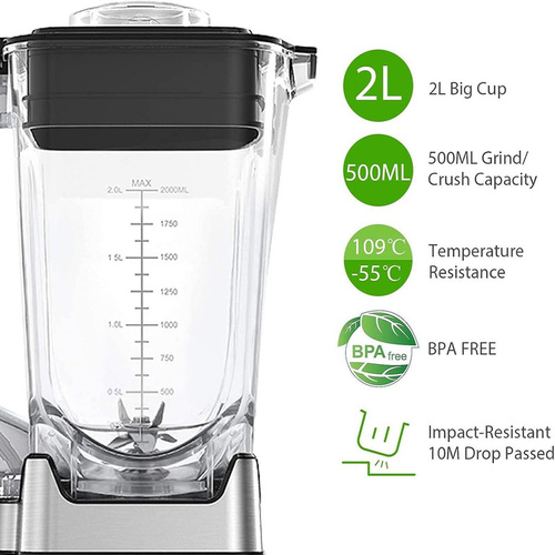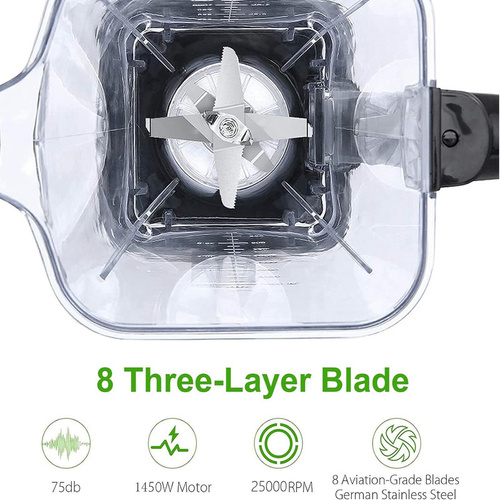 دور موتور این مخلوط کن حدود 32,000 دور در دقیقه است که این ویژگی باعث میشود مواد به طور کامل و یکنواخت مخلوط شوند. پارچ این دستگاه با ظرفیت 2 لیتر، مناسب برای خانوادههای متوسط و تهیه نوشیدنی برای چند نفر است. جنس پارچ از پلاستیک Tritan یا پیرکس نشکن است که مقاوم و قابل اعتماد میباشد.
